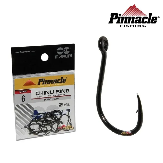 Anzol Pinnacle Chinu Ring Cartela Maruri, fabricado em high carbon steel de alta qualidade, durabilidade e resistência, considerado por várias pescadores um dos melhores anzóis para a pescaria de Piau, Pacu, Tambacu, Piapara e outras espécies de peixes.