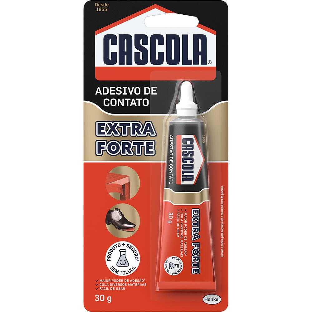 CASCOLA Cola de Contato Extraforte é indicada para diversas colagens como fitas de borda, lâminas decorativas, couro, lambris e diversos materiais sintéticos sobre materiais como madeira, compensado, aglomerados, MDF, HDF, concreto, cimento etc. Sua fórmu