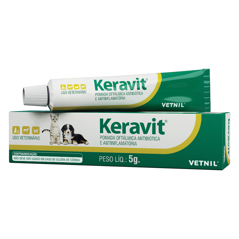 KERAVIT 5G é uma pomada oftálmica para uso veterinário, da marca Vetnil, indicada para cães e gatos. É um medicamento antibiótico e anti-inflamatório utilizado para tratar diversas afecções oculares. Para que serveA pomada é indicada para o tratamento